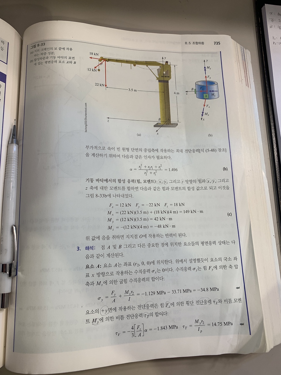 모멘트관련 질문이 있어서 올리게 되었습니다. 그림의 지브 크레인의 힘 , 모멘트를 구할때 (식 .c ) Mx, My, Mz의 합성응력이 저렇게 나오는 이유가 궁금합니다. 오른손의 법칙을 사용하라고 하는데 개념이 흔들려 찾지 못하는 것 같습니다. 항상좋은 질의 강의 올려주셔서 감사합니다. 답변 완료된 질문과 답변은 수정 및 삭제가 불가합니다. |