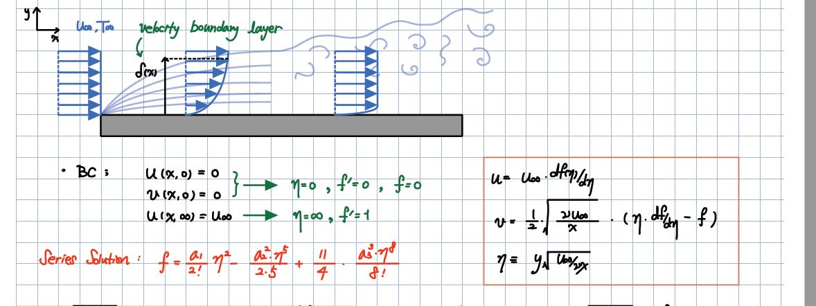 1. 갑작스럽게 속도를 u로만 표기하다가 갑자기 v텀이 나옵니다. 사실 그림에서는 u로만 표기가 가능했는데 어떻게 v에 대한 텀이 갑자기 나와서 바운더리 컨디션을 제시하는지 궁금합니다.