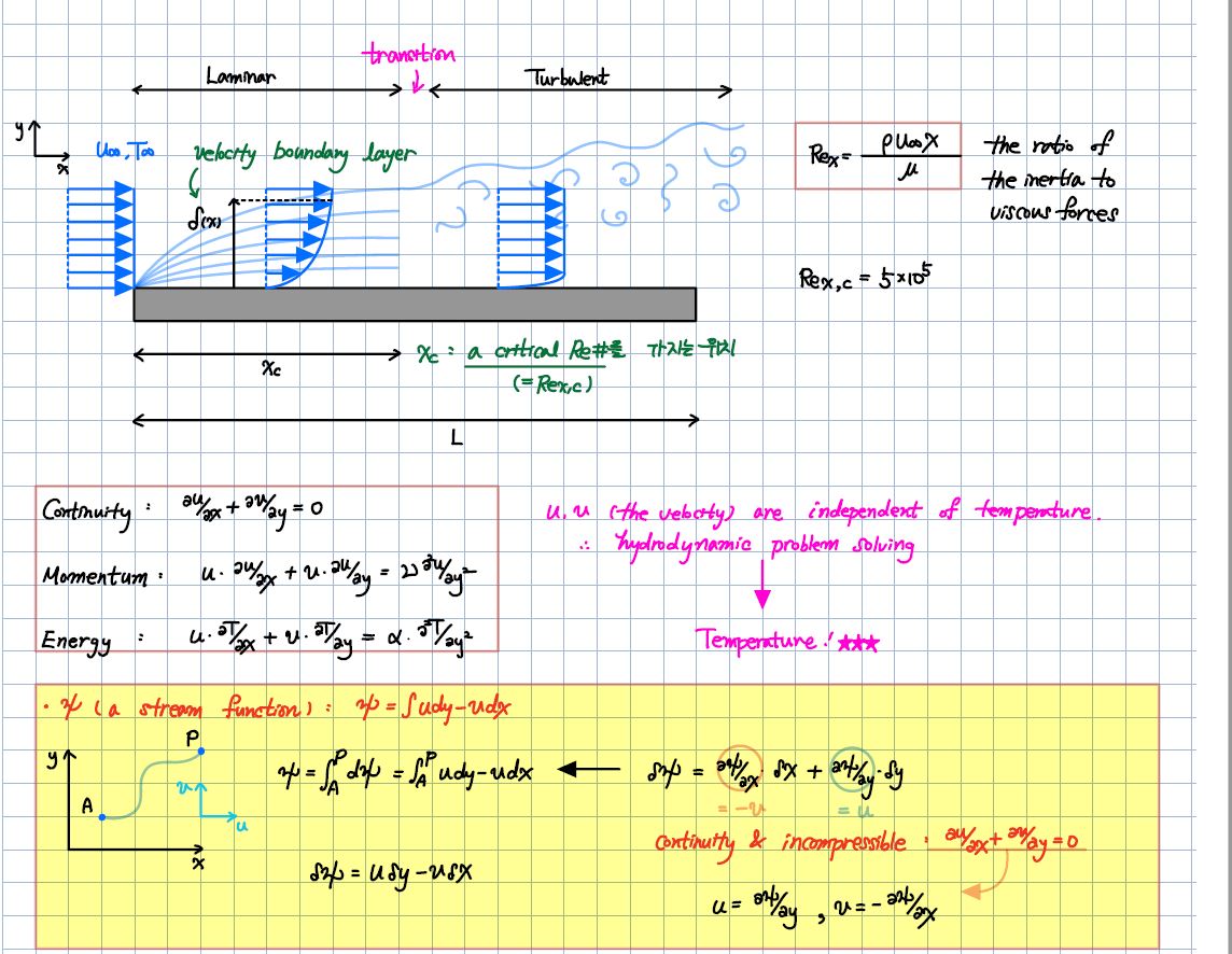 3. 바운더리 레이어를 그림에서 여러줄로 그리신것은 라미나 플로우 특성으로 그냥 그리신건지요? (바운더리 레이어가 여러층인가 처럼 보여서 문의드립니다.) 4. stream function에서 u=d푸사이/dy, v=- d푸사이/dx 이렇게 솔루션을 제시하셨는데, 사실 u에 마이너스가 붙어도 상관 없는 것 같아서 문의드립니다. 솔루션에서 v쪽에 마이너스가 붙는건 어떻게 이해하면될지요 (연속방정식 조건이면u가 마이너스 여도 될 것 같아서요. 그리고 stream 함수는 어디서 더 찾아볼 수 있는지요....