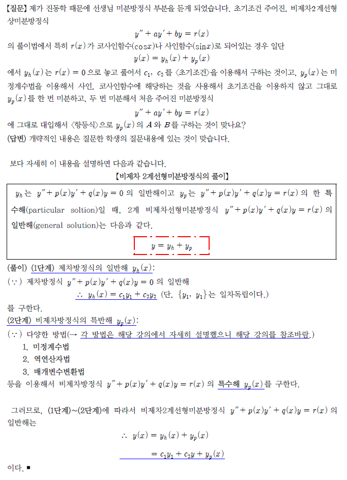 | 제목 | 답변완료 2계상미분비제차 방정식풀이 | ||