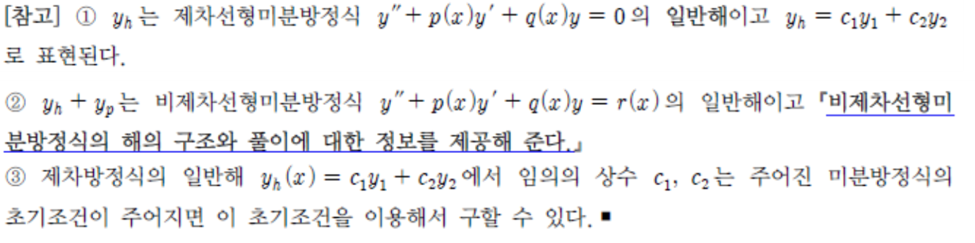 yh는 r(x)를 0으로 놓고 풀어서 c1,c2를 <초기조건>을 이용해서 구하는 것이고