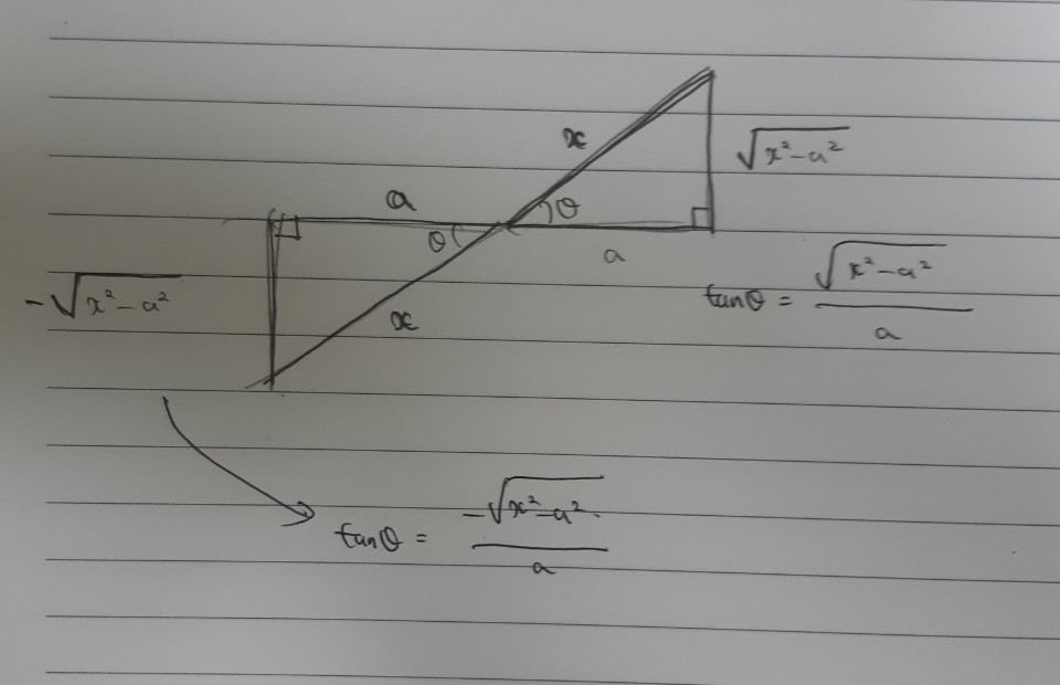 치환적분을 진행한 뒤 세타를 x로 다시 변환시켜 줄 때 강의에서(35강 44분 45초경) 직각삼각형을 이용해 다른 삼각함수의 값을 얻어내시는데요,