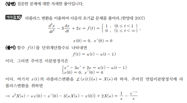 | 제목 | 답변완료 [공업수학:올바른 개념완성] 5.3 미분방정식과 라플라스 변환 예제 3.10 | ||