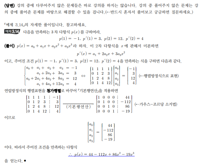 | 제목 | 답변완료 [선형대수학] 선형대수학 : 올바른 개념완성/[3-1] 가우스 소거법 문제풀이/30페이지/예제 3.14번 | ||
