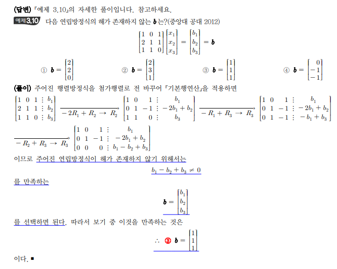 | 제목 | 답변완료 [선형대수학] 선형대수학 : 올바른 개념완성/[3-1] 가우스 소거법 문제풀이/29페이지/예제 3.10번 | ||