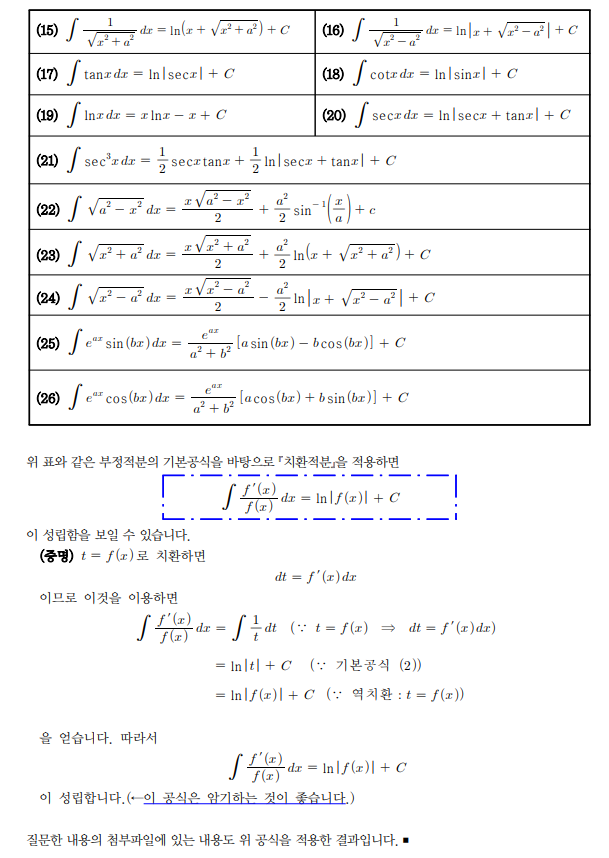 x에 대한 적분을 하면 왜 ln~~~ 이 나오는지 모르겠습니다. 첨부파일처럼 생각하는게 틀린건가요? 교수님 감사합니다 ^^