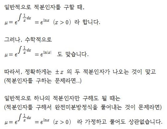 적분인자는 여러개 일수 있으니까 여기서는 적분인자가 두개 나오는 경우(x와 -x)인건지