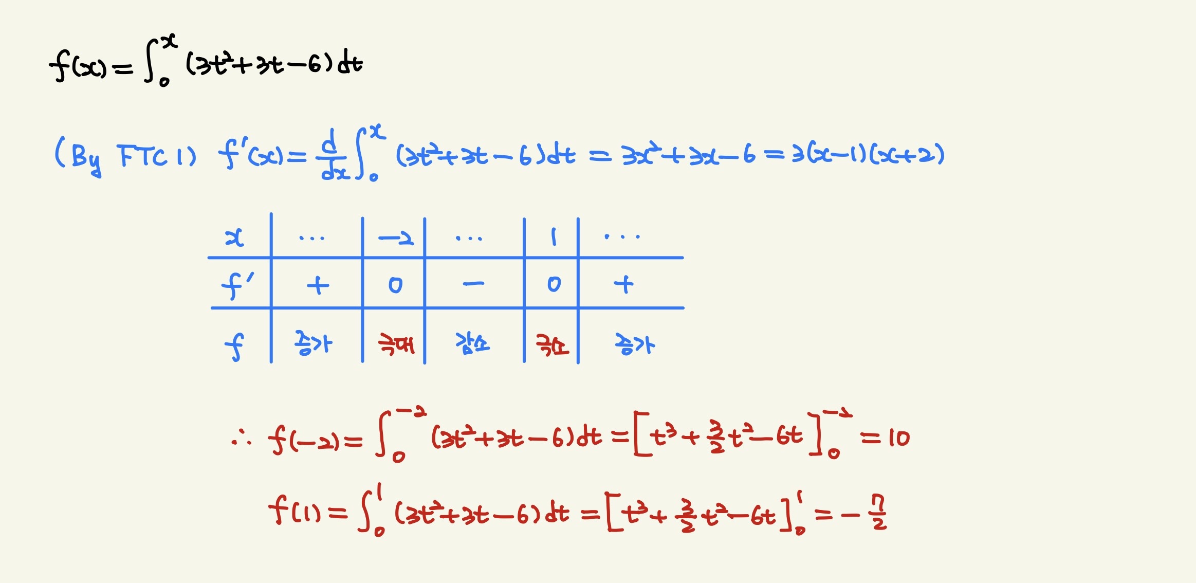 극대는 -2에서 극소는 1에서 나오는거죠? 오타인가요?