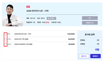 강좌명과 교재명 앞에 있는 체크 표시를 함께 선택해 주시면 강좌와 교재를 동시에 구매하실 수 있습니다.
